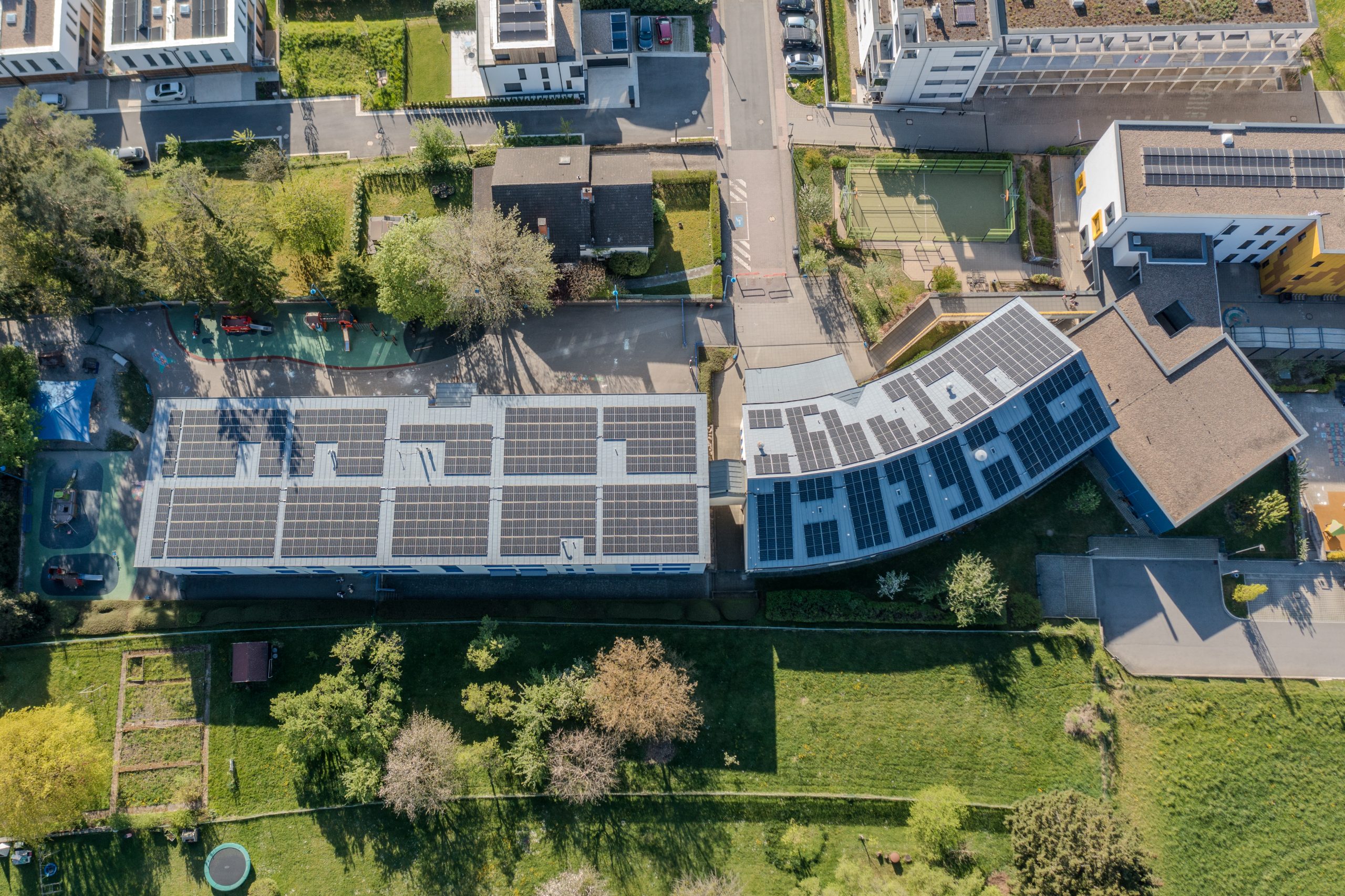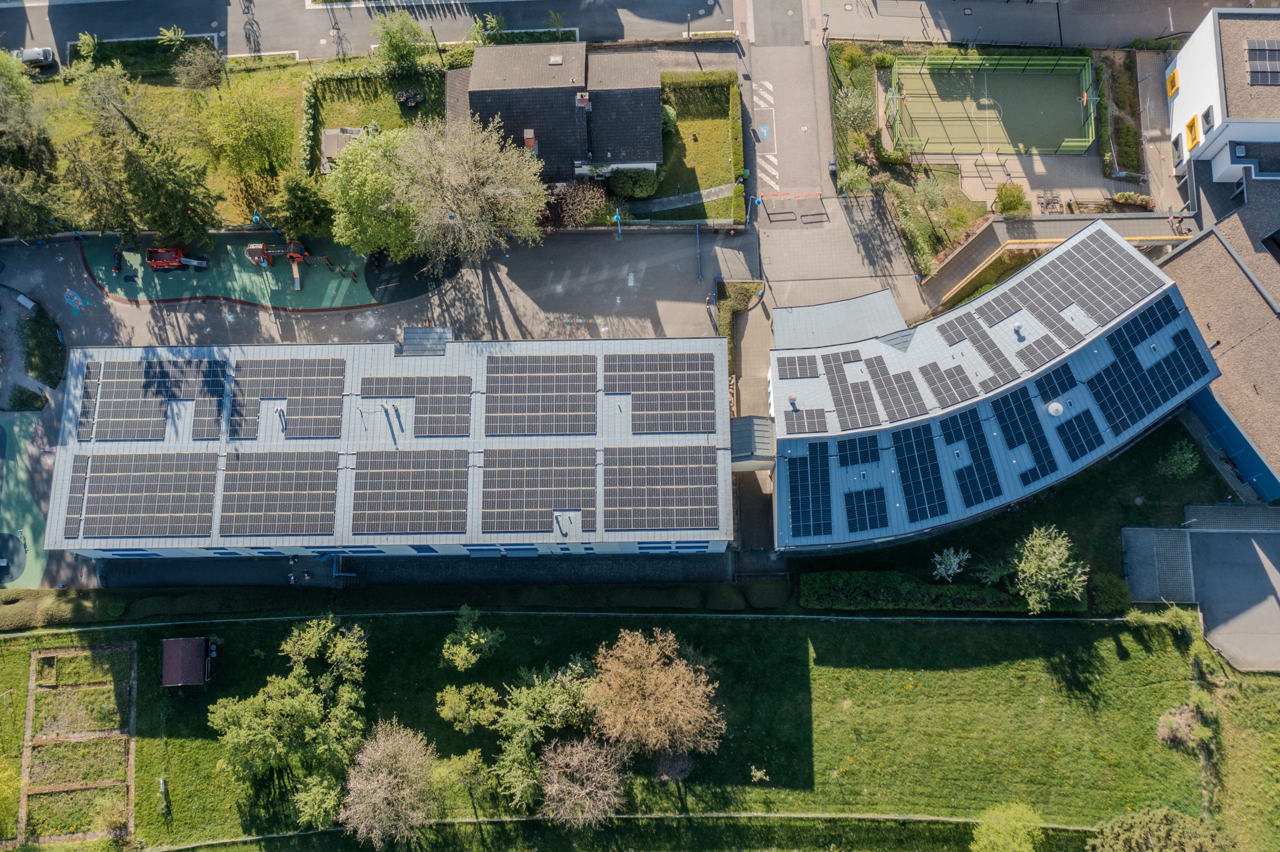 Beschreibung der PV-Anlage auf dem Dach der Grundschule in Helmsange.